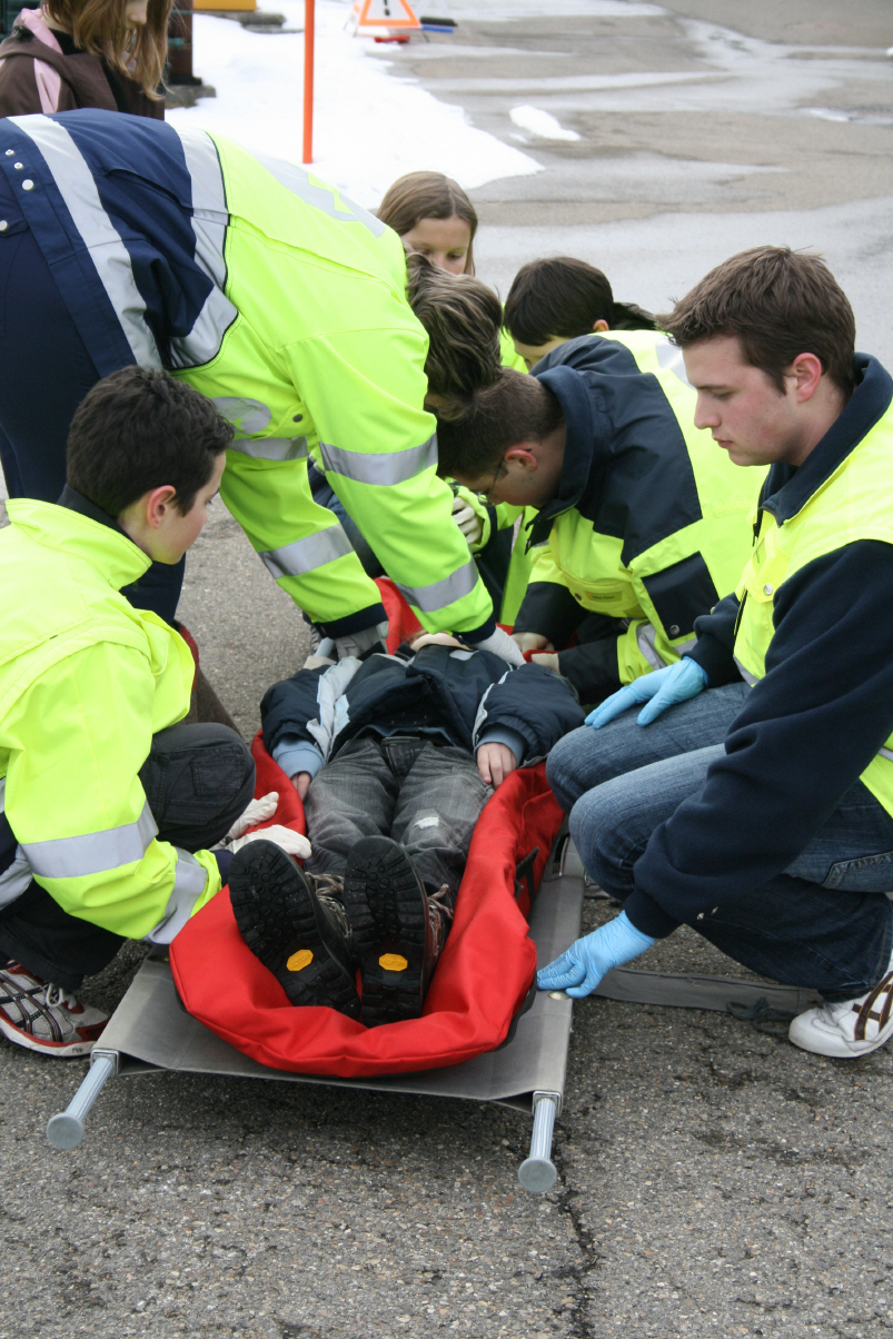 Die Fotopräsentation mit Schnappschüssen aus den letzten zehn Jahren Vereinsgeschichte der Samariterjugendgruppe brachte einige Gäste der zufriedenen Teilnehmerschar am Jubiläumsanlass zum Schmunzeln. Manch ein Helpi, das vor zehn Jahren noch zu den „Kleinen“ gehörte, engagiert sich heute aktiv im Leitungsteam der Jugendgruppe. Der Teamleiter Philipp Ramseyer begrüsste stolz die geladenen Gäste sowie Helpis und Eltern zur gemeinsamen Jubiläumsfeier. Nach einem Rückblick auf die vergangenen Jahre mittels Bildpräsentation folgte eine Demo, an der die Samariterjugendgruppe trotz klirrender Kälte ihr Können unter Beweis stellte. Ein simulierter Unfall mit Kollision eines Velofahrers gegen ein Auto erforderte die Rettung zweier Patienten unter Einsatz von Schaufelbahre, Vakuummatratze und Halskrause. Fabian Steiger, der stellvertretende Teamleiter führte die Zuschauer durch das Programm der Einsatzdemonstration und erläuterte mit fundiertem Fachwissen die Anwendung der Rettungshilfsmittel.