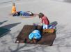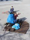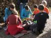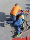 Wie ein Druckverband gemacht oder die Daumenbasis und das Knie korrekt verbunden wird – dies war eine weitere anspruchsvolle Postenarbeit. Auch die verschiedensten Lagerungen, wie zum Beispiel die stabile Seitenlage, fanden ihren Platz am Postenlauf und mussten von den Helpies unter den kritischen Augen der Postenleiterinnen und Postenleiter korrekt ausgeführt werden.